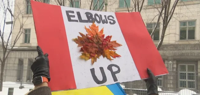 ഒട്ടാവ:അമേരിക്കയുടെ നികുതി ഭീഷണികൾക്കും അതിർത്തി കൈയ്യേറ്റ ശ്രമങ്ങൾക്കുമെതിരെ കാനഡ ഒറ്റക്കെട്ടായി നിലകൊള്ളുന്നു. “എൽബോസ് അപ്പ്” എന്ന പുതിയ ദേശീയ മുദ്രാവാക്യം ഹോക്കി ഇതിഹാസം ഗോർഡി ഹോവിന്റെ (“മിസ്റ്റർ എൽബോസ്”) കളിരീതിയിൽ നിന്ന് പ്രചോദനം ഉൾക്കൊണ്ടതാണ്.കാനഡ ജന്മനായ നടൻ മൈക് മയേഴ്സ് സാറ്റർഡേ നൈറ്റ് ലൈവിൽ “കാനഡ ഈസ് നോട്ട് ഫോർ സെയിൽ” എന്ന് എഴുതിയ ടീഷർട്ട് ധരിച്ചുകൊണ്ട് ഈ മുദ്രാവാക്യം ലോകപ്രശസ്തമാക്കി. മാനിറ്റോബ പ്രീമിയർ വാബ് കിന്യൂവും പ്രതിഷേധക്കാരും ഒരുപോലെ ഈ മുദ്രാവാക്യം ഏറ്റെടുത്തിട്ടുണ്ട്.
