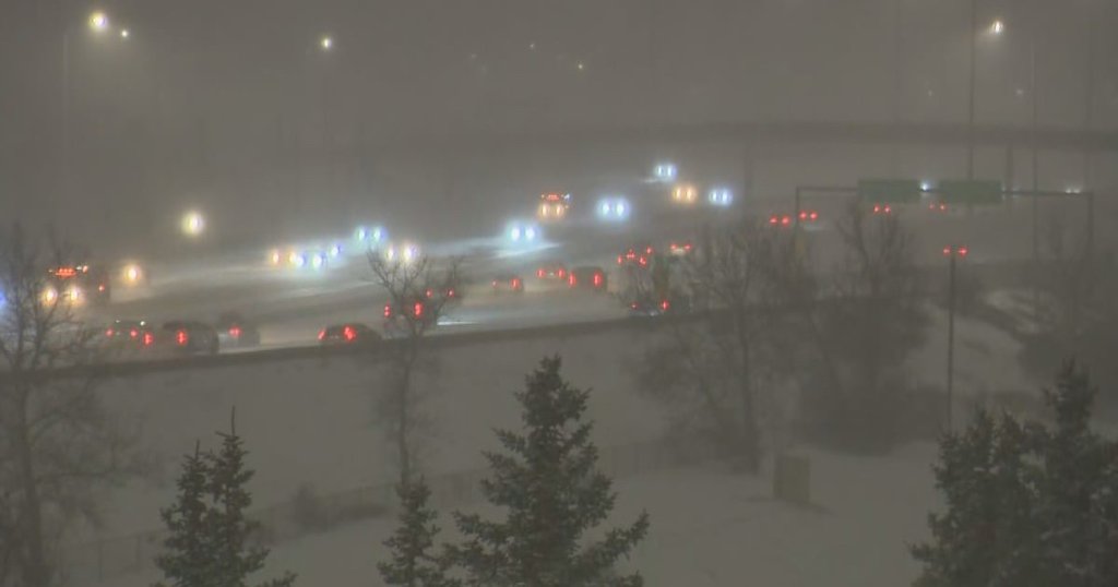 Calgary shivers in spring snow; Twelve vehicles collide in accident, caution issued