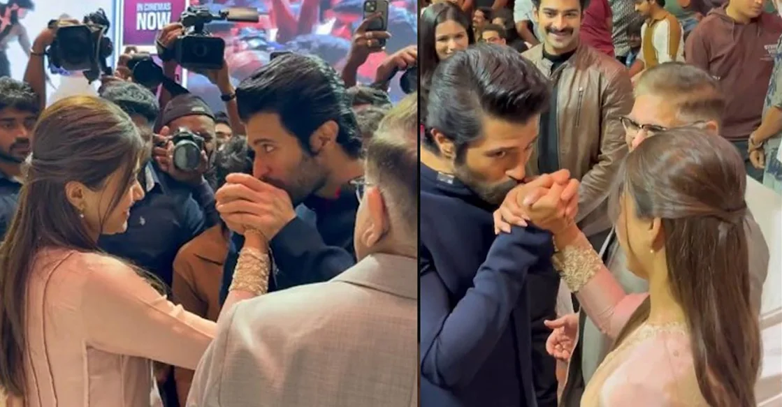 സൗത്ത് ഇന്ത്യൻ സിനിമയിലെ ഏറ്റവും വലിയ ചർച്ചാ വിഷയമായി മാറിയിരിക്കുകയാണ് സൂപ്പർതാരങ്ങളായ വിജയ് ദേവരകൊണ്ടയുടെയും രശ്മിക മന്ദാനയുടെയും പ്രണയം. അഭ്യൂഹങ്ങൾക്കൊടുവിൽ, ഇരുവരും തങ്ങളുടെ ബന്ധം പരസ്യമാക്കിയിരിക്കുകയാണ്. രശ്മികയുടെ ഏറ്റവും പുതിയ ചിത്രം ‘ദ് ഗേൾഫ്രണ്ടി’ന്റെ ഹൈദരാബാദിൽ നടന്ന വിജയാഘോഷ ചടങ്ങിനിടയിൽ സംഭവിച്ച ഒരു അപ്രതീക്ഷിത നിമിഷമാണ് ഇപ്പോൾ സോഷ്യൽ മീഡിയയിൽ വൈറലായിരിക്കുന്നത്. സദസ്സിനെ സാക്ഷിനിർത്തി വിജയ്, രശ്മികയുടെ കയ്യിൽ പരസ്യമായി ചുംബിച്ചു! ശേഷം നാണിച്ചുനിൽക്കുന്ന രശ്മികയുടെ ഭാവങ്ങളുമാണ് ആരാധകർ ഏറ്റെടുത്തിരിക്കുന്നത്.