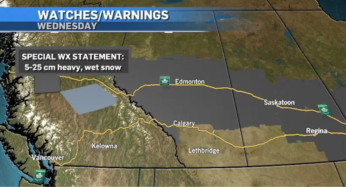 ആൽബർട്ട: ആൽബർട്ട സ്പ്രിംഗ് സീസൺ കൊടുങ്കാറ്റിന് തയ്യാറെടുക്കുന്നു , ഇന്ന് വൈകുന്നേരം മഴയും ഹിമപാതവും ഒരുമിച്ച് കടന്നുവരുന്നു . പസഫിക് സമുദ്രത്തിലെ ഈർപ്പം കാരണം മധ്യ ആൽബർട്ടയിൽ ഒരു പ്രത്യേക കാലാവസ്ഥ അനുഭവപ്പെടാൻ സാധ്യതയുണ്ട്. വ്യാഴാഴ്ച നേരത്തെ തന്നെ കാൽഗറിയുടെ വടക്കൻ പ്രദേശങ്ങളെ ഈ കൊടുങ്കാറ്റ് ബാധിക്കും.